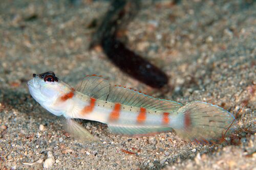 ハゼのうち、エビと共生する、共生ハゼと呼ばれるハゼたちです。 撮影条件は、本稿共通で、以下の通り。 撮影器材:Canon EOS7D MarkII + 100マクロ (フルサイズ160mm相当) 撮影協力:アクエリアスダイバーズ aqdceb.com 和名(仮):レッドマージン・シュ…